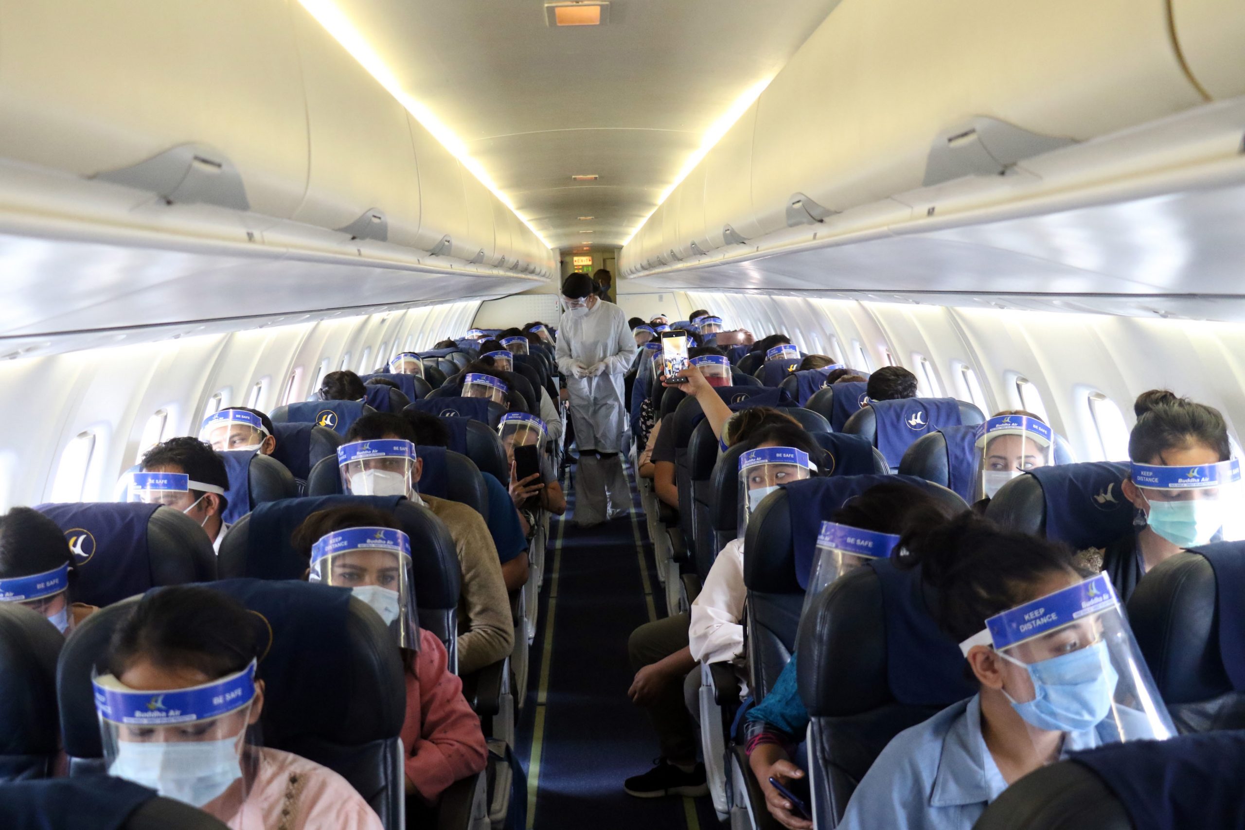 यात्रु महानुभावहरु ध्यानदिनुहोला ! “कोभिड–१९ को महामारीबाट सुरक्षित रहनका लागि हवाई यात्रामा पालना गर्नुपर्ने सुरक्षा निर्देशन” कृपया आफ्नो सिटबेल्ट बाँधिदिनु होला, यात्रा अवधिभर मास्क र फेससिट लगाउनुहोला । उडानका बेला हिँडडुल नगर्नु होला, अति आवश्यक भएमात्र शौचालयको प्रयोग गरिदिनुहुन र पानीको वितरण पनि अति आवश्यक परेको खण्डमा मात्र उपयोग गरिदिनुहोला साथै उडान अवधिभर श्वासप्रश्वास सम्बन्धी केही समस्या भएमा, रिङ्गटा लागेमा विमानका कर्मचारीलाई जानकारी गराउनुहोला र विमानबाट ओर्लँदा चार–चार जना मात्र ओर्लनुहोला ।