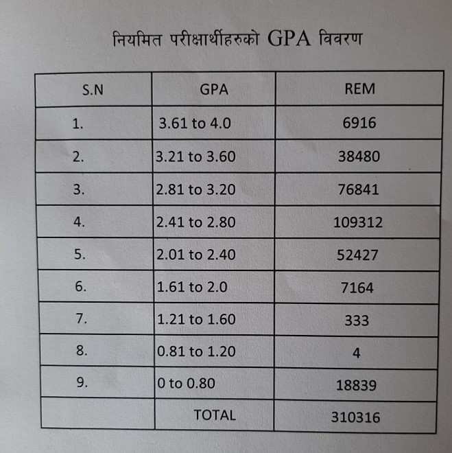 कोरोना कहरबीच स्वास्थ्यसम्बन्धी मापदण्ड पालना गर्दै मंसिर ९ बाट ४ हजार १ सय ५ वटा केन्द्रमा परीक्षा सञ्चालन भएको थियो । मंगसिर ९ गते देखि लिइएको परीक्षामा ४ लाख ३२ हजार ५ सय परीक्षार्थी परीक्षामा सहभागी भएका थिए ।