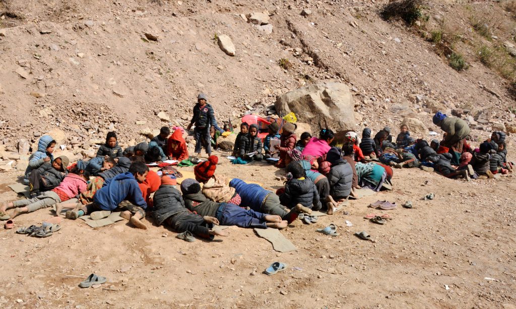 बाढीले नामोनिसान नराखी विद्यालय बगायो, अहिलेको जाडोमा धुलाम्मे चौरमा पढन बाध्य छन् बालबालिका !