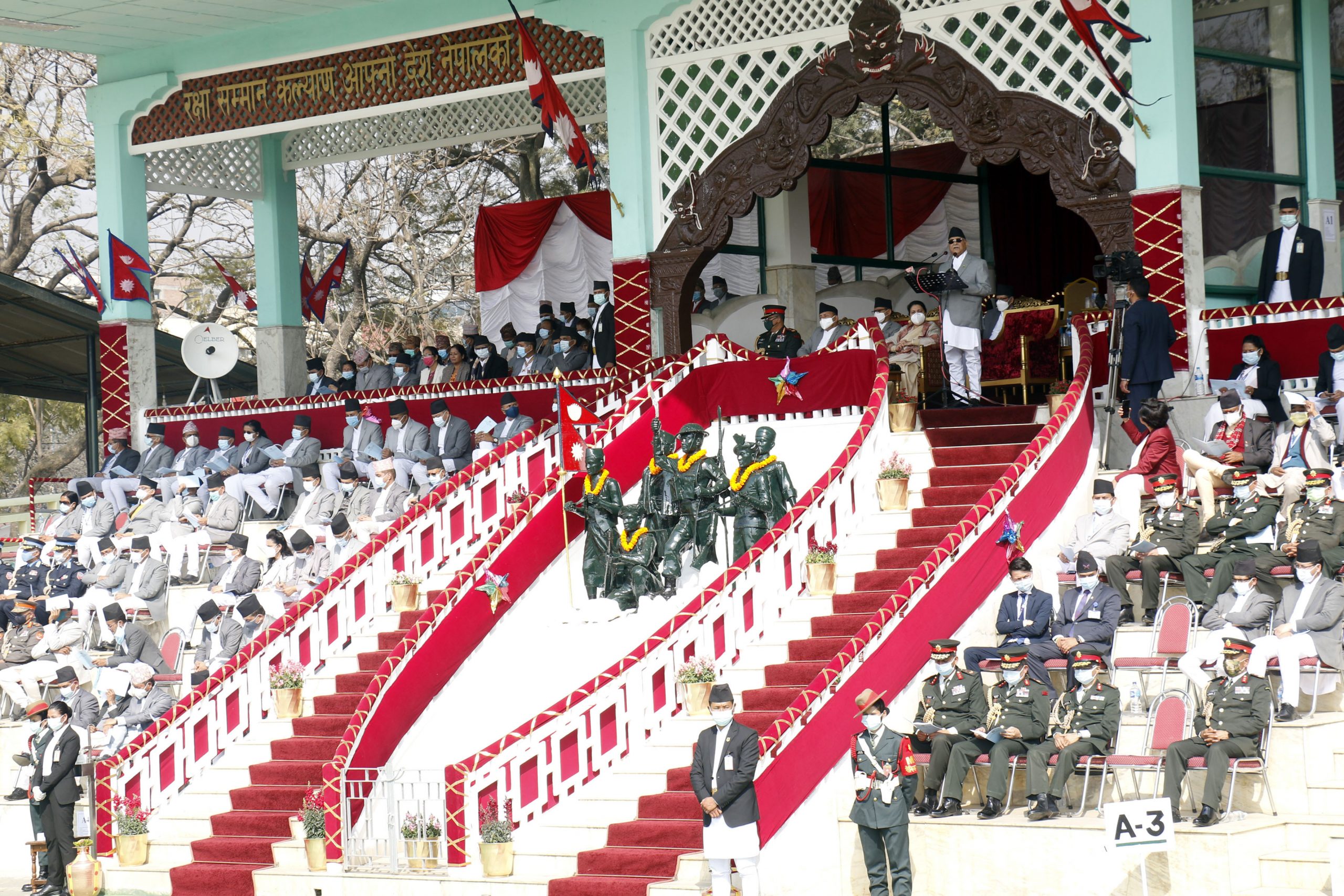 उक्त कार्यक्रममा राष्ट्रपतिका साथै उपराष्ट्रपति, प्रधानमन्त्री, प्रधानन्यायाधीश, प्रधानसेनापति मन्त्रीलगायत उच्चपदस्थ सरकारी अधिकारीको उपस्थिति थियो। कार्यक्रममा नेपाली सेनाको हेलिकप्टरबाट ‘राष्ट्रिय प्रजातन्त्र दिवस २०७७’ लेखिएको ब्यानर समेत फहराइएको थियो।