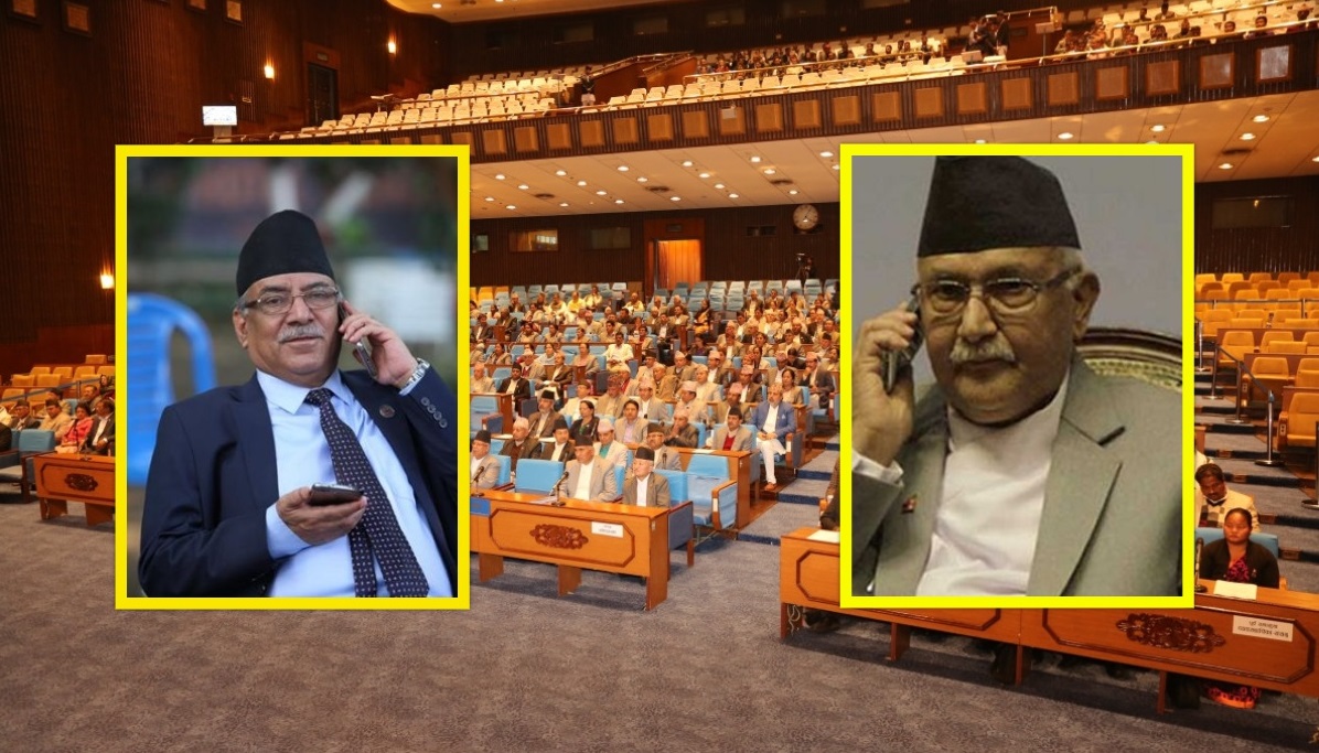 ‘तपाईहरुले देखिरहनु भएको छ, प्रधानमन्त्रीको खोजी कत्रो भईराखेको छ । दौडाह दौड छ प्रधानमन्त्रीको खोजीमा । दिए खान्थ्ये म पनि भनेको छ । त्यसको पनि एउटा विधिपद्दति छ । प्रक्रिया, संसदीय अभ्यास, संविधान, कानुन र नियमावली छ । त्यस अन्तर्गत आउनुहोस् र बस्नुस्’, प्रधानमन्त्री ओलीले अगाडी भने, ‘विधिप्रक्रियाबाट आउनुहोस् । हामी मान्छौं । मानेर केही बिग्रिदैन, डेढ वर्ष हामी प्रतिपक्षमा बसौंला । डेढ वर्ष प्रतिपक्षमा बसेपछि दुईतिहाई लिएर फेरी फर्कन्छौं । किनभने हामीलाई कुनै छलछाम गर्नुछैन, तिकडम गर्नु छैन । हाम्रो उदेश्य भनेको देश बनाउने हो ।’