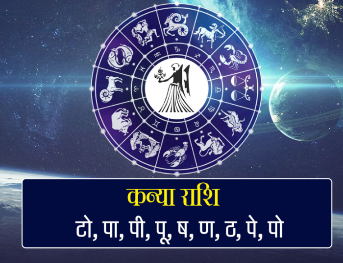 कन्या – टो, प, पि, पु, ष, ण, ठ, पे, पो (Virgo)