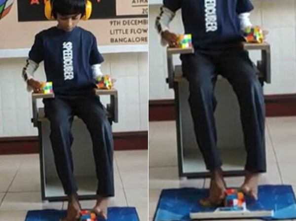 विश्वास गर्नुहोस्…. जुन काम कतिपय मानिस आफ्नो हातले गर्न सक्दैनन्, त्यो काम एक ८ वर्षीय बच्चाले आफ्नो खुट्टाले गरेर देखाए। यस बच्चाको नाम अथर्व आर भट हो। उनी भारतका बंगलुरुका हुन्। हालै मात्र उनले १ मिनेट ३० सकेन्ड भन्दा पनि कम समयमा एक साथ ३ रुबिक्स क्युब सल्ब गरेर गिनीज बुक अफ वर्ल्ड रेकर्डमा आफ्नो नाम दर्ता गर्न सफल भएका छन्। यसको लागि, अथर्वले रुबिक्स क्युब केवल हातले मात्र नभएर आफ्ना खुट्टाले पनि हल गरे। उनको यो क्षमता देखेर धेरै मानिस आश्चर्यमा छन्।
