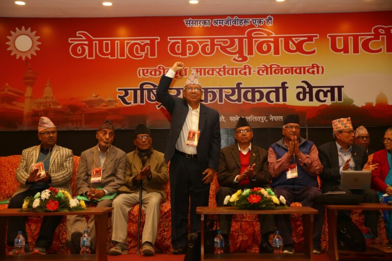 काठमाडौं – नेकपा एमालेका वरिष्ठ नेता माधवकुमार नेपालले आफूहरु पार्टी विभाजनको पक्षमा नभएको बताउनुभएको छ । उहाँले ओली प्रवृत्तिसँग हारेर मैदान छाडेर नभाग्ने चेतावनी दिँदै पार्टीलाई एकताबद्ध बनाएर लैजाने बताउनुभयो । यो समाचार आजको नेपालसमाचार पत्रमा प्रकाशित छ।