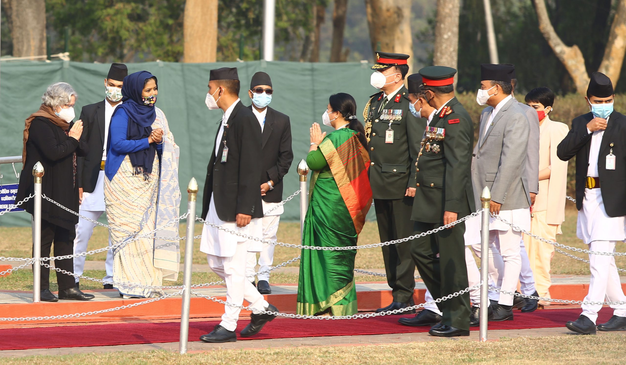 उनलाई त्रिभुवन अन्तर्राष्ट्रिय विमानस्थलको अतिविशिष्ट कक्षमा उपराष्ट्रपति नन्दबहादुर पुन, प्रधानमन्त्री केपी शर्मा ओली, सभामुख अग्निप्रसाद सापकोटा, राष्ट्रियसभाका अध्यक्ष गणेशप्रसाद तिमिल्सिना, उपप्रधानमन्त्री ईश्वर पोखरेल र संविधानसभा अध्यक्ष सुवासचन्द्र नेम्वाङले बिदाइ गरे ।