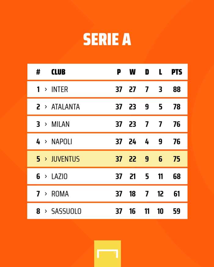 एसी मिलान र न्यापोलीले आ-आफ्नो खेल जितेको खण्डमा भने युभे पाचौं स्थानमा लिगको समापन गर्ने पक्का देखिन्छ। तर यदि युभेले आफ्नो अन्तिम खेल जितेर मिलान र न्यापोली मध्ये एक क्लबले अंक गुमाएको खण्डमा भने ओल्ड लेडीको च्याम्पियन्स लिगमा स्थान पक्का हुनेछ।