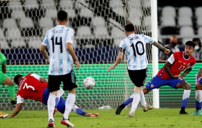 खेलको ३३ औं मिनेटमा अर्जेन्टिनका कप्तान मेस्सीले करियरको ५७ औं फ्री-किक गोल गर्दै आफ्नो टोलीलाई अग्रता दिलाएका थिए । झन्डै २० यार्ड टाढाबाट मेस्सीले गरेको फ्रिकिक प्रहार गोलरक्षक क्लाउडियो ब्राभोले हातले भ्याएपनि पोस्टबाहिर राख्न सकेनन् । लगत्तै लाउटारो मार्टिनेजले अग्रता दोब्बर पार्ने अवसर चुकाए । पेनाल्टी क्षेत्रबाहिर अनमार्क रहेको अवस्थामा उनको प्रहार बाहिरिएको थियो ।