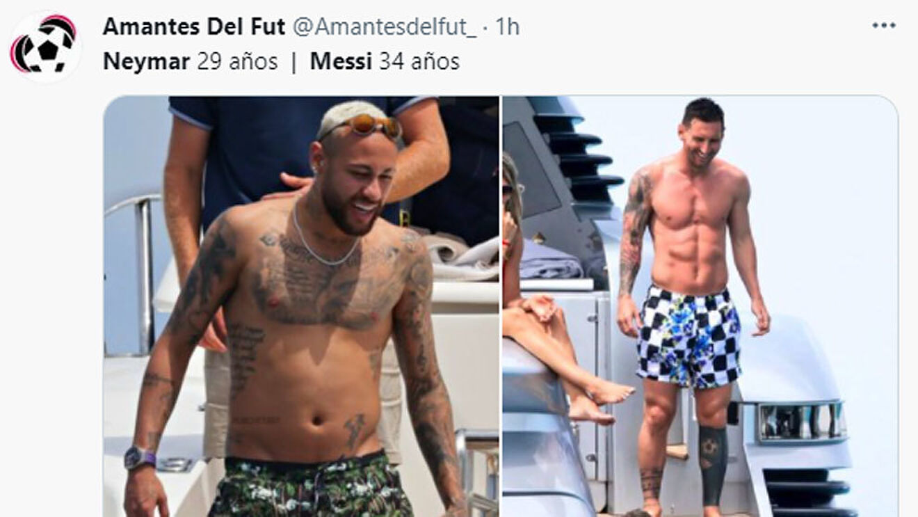 त्यस्तै, इबिजामा बिदा मनाइरहेका पीएसजी स्टार नेइमार भने नकारात्मक रूपमा अहिले चर्चामा आएका छन्। ब्राजिलियन स्टारले सामाजिक सञ्जालमा पोस्ट गरेको एक फोटोले अहिले निकै चर्चा बटुलिरहेको छ। उक्त फोटोमा नेइमारको पेट सामान्य फुटबल खेलाडीको भन्दा अलि ठूलो देखिन्छ। फोटो हेर्दा लाग्छ कि उनी केहि किलो तौल बढेका छन्। उनको यस फोटो देखेर धेरैले उनलाई मेस्सीको फिट बडीसँग तुलना गर्न सुरु गरेका छन्। एकले त ३४ वर्षीय मेस्सीको बडी र २९ वर्षीय नेइमारको बडी भनेर हास्यास्पद तरिकाले तुलना गरेका छन्।