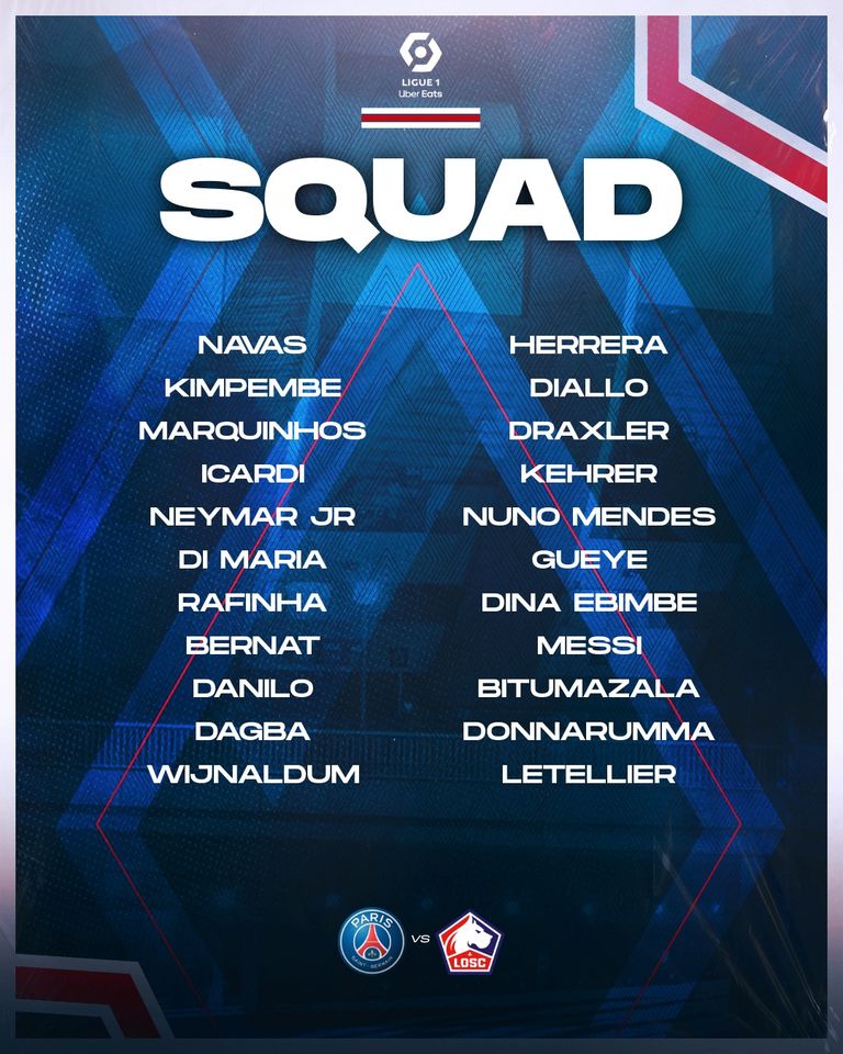 यस अगाडी मेस्सी खेल्ने सम्भावना कम रहेको भनिएपनि आजको खेलमा लियोनेल मेस्सी पनि खेल्ने भएका छन्। पिएसजीले खले अगाडी सार्वजनिक गरेको २२ खेलाडी सहितको स्क्वाडमा मेस्सीको नाम अटाएको छ। यस अगाडी समस्या समस्याका कारण मेस्सी आजको खेलमा नहुने चर्चा गरिएको थियो।