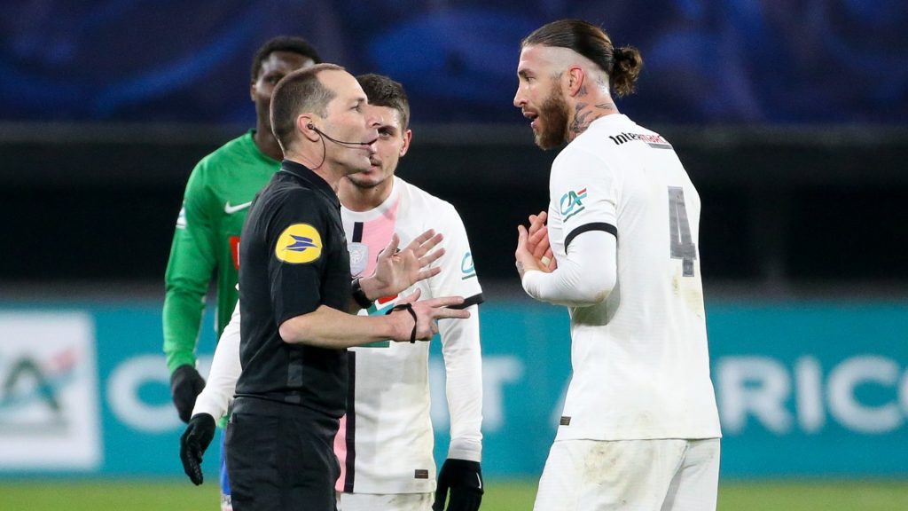 त्यसअघि दोस्रो हाफको शुरुमा नुनो मेन्डेसको स्थानमा मैदान छिरेका भेट्रान डिफेन्डर सर्जियो रामाेस दोहोरो पहेँलो कार्ड खादै मैदानबाट बाहिरिएपछि पिएसजी ८५औं मिनेटमा १० खेलाडीमा समेटिन पुगेको थियो । उनले यो सिजन पिएसजीका लागि दोस्रो खेल खेल्दा नै रातो कार्डको सामना गर्नुपरेको हो ।