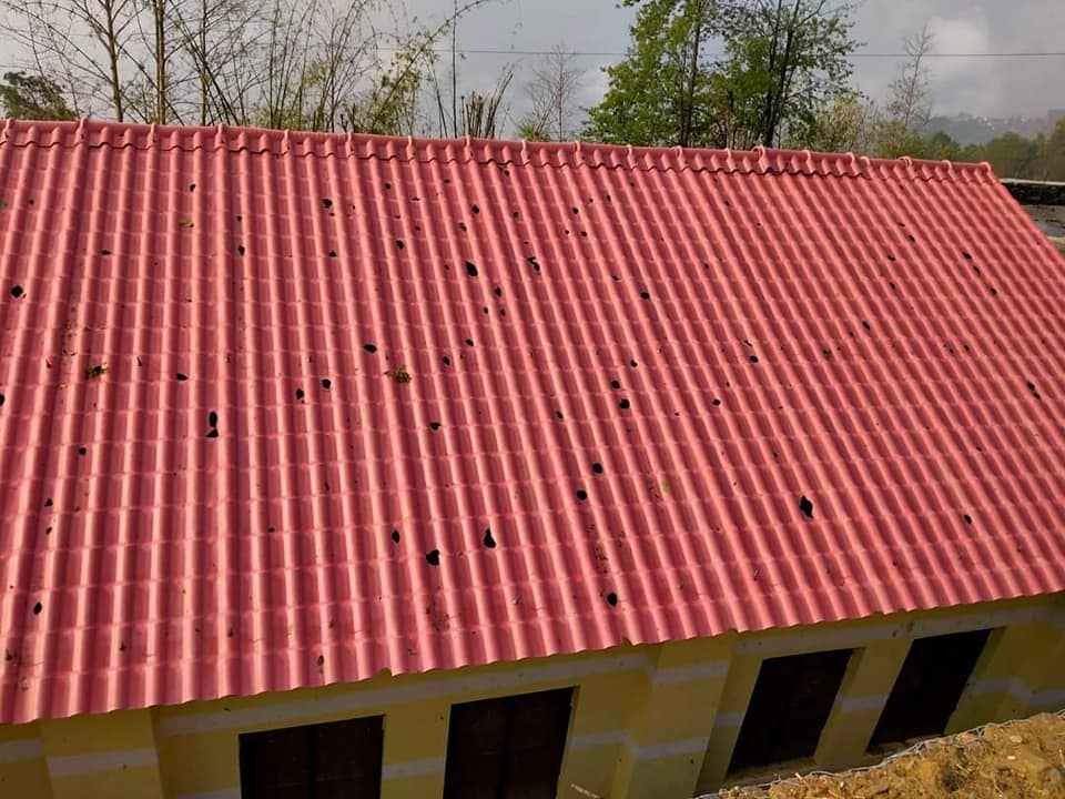असिनाले विद्यालयको छानो नै प्वाल पारेपछि …