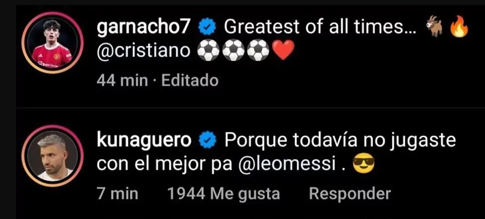 गार्नाचोले उक्त पोष्टमा सयौं प्रतिक्रियाहरू प्राप्त गरे, तर म्यानचेस्टर सिटीका पूर्व खेलाडीले भने आफ्नो असहमति व्यक्त गरेका छन्। अगुएरोले लेखेका छन्, “[तपाईंले यो भन्नु भयो] किनकि तपाईंले अझै पनि उत्कृष्ट, लियोनल मेस्सीसँग खेल्नुभएको छैन।”