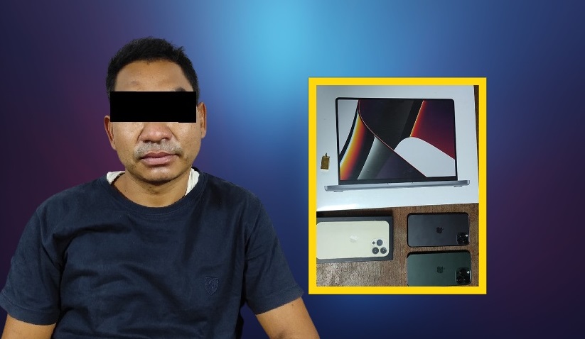 प्रहरीले उनको साथबाट ४० ग्राम सुनको लकेट, एप्पलको म्याक बुक प्रो एमआई १४ तथा आइफोन १३ प्रो म्याक्स र आइफोन ११ प्रो म्याक्स फोन गरी करिब १० लाख ४ हजार ८ सय मूल्य बराबरको सामान बरामद गरेको छ।