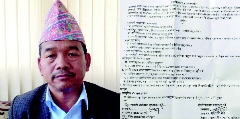 आफ्नै गाडी भाडामा दिएर आफैं चढ्ने गाउँपालिका अध्यक्ष, मासिक भाडा १ लाख ८० हजार !