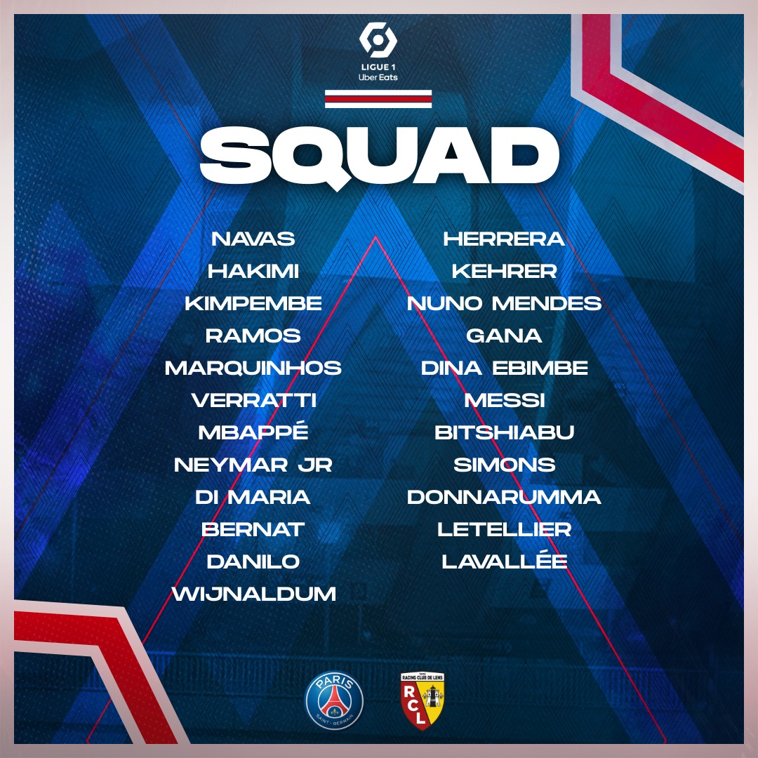 लेन्स विरुद्धको खेलमा भने मेस्सी खेल्ने उच्च सम्भावना रहेको छ। पिएसजीले सार्वजनिक गरेको प्रारम्भिक टोलीमा मेस्सीको नाम समावेश छ। त्यस्तै लेन्स विरुद्ध नेयमार, एम्बाप्पेसँगै डिफेन्डर रामोस पनि उपलब्ध हुनेछन्।