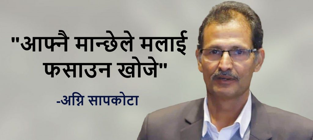 Read Moreकाठमाडौँ – गृहजिल्ला सिन्धुपाल्चोक पुगेका सभामुख अग्निप्रसाद सापकोटाले आफूलाई फसाउन खोजिएको बताएका छन्। सिन्धुपाल्चोकमा शनिबार आयोजना गरिएको बधाइ कार्यक्रममा बोल्दै आफूलाई फसाउन आफ्नै मान्छेहरु लागिपरेको बताएका हुन्। जिल्ला समन्वय समिति …