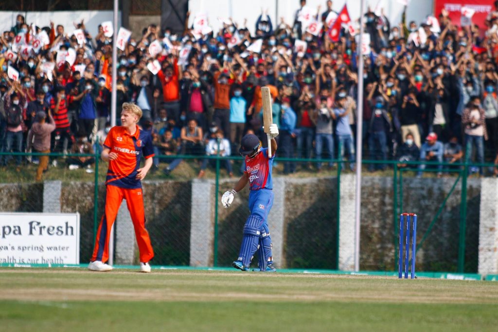 Read Moreकाठमाडौं – नेपालले पहिलो त्रिकोणात्मक सिरिजमा नेदरल्यान्ड्सलाई ९ विकेटले हराउँदै सानदार जित निकालेको छ । जितको लागि १ सय ३६ रनको विजयी लक्ष्य पछ्याएको नेपालले १५ ओभरमा १ विकेट गुमाउँदै …